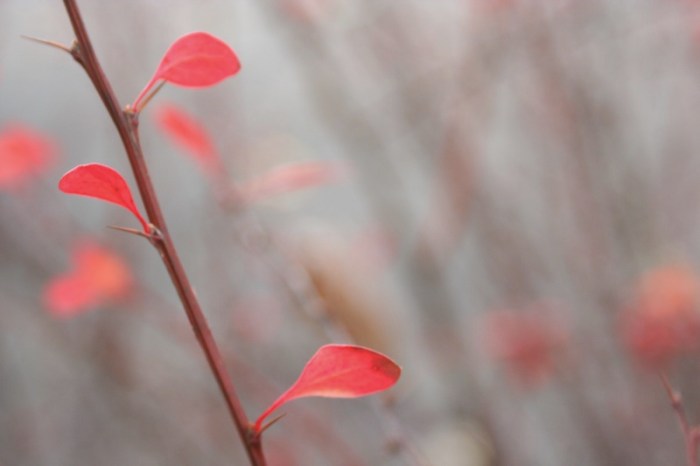 I took an afternoon walk this week to get out and capture the last of the fall colors. I’ll put together a whole series for next week, but in the meantime, here was my favorite find: lone red leaves that stood out against the gray afternoon.