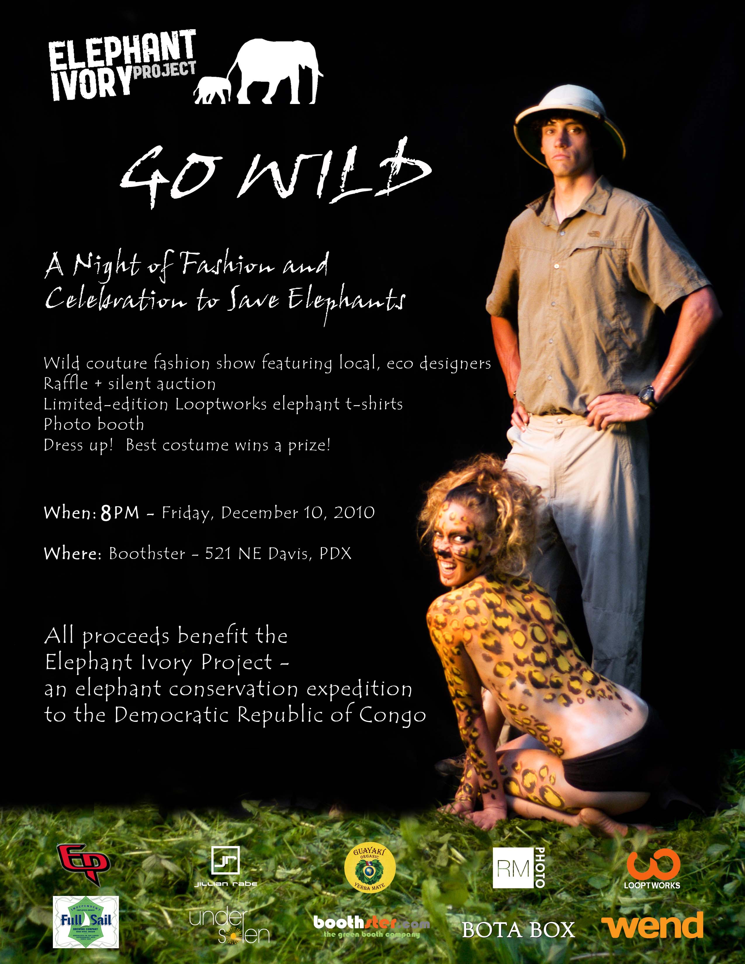 Portland’s fashion elite have joined forces with the conservation community to throw a wild couture fashion show featuring local, eco designers in an effort to save wild African elephants from the illegal ivory trade. So, paint yourself up like a zebra, grab some cash money for a hot limited-edition Looptworks elephant t-shirt and make your way to Boothster on 521 NE Davis for the party of the season.