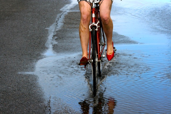 Video shoot today with Red Reel Video, which entailed bikes, puddles and a pair of red heels. That’s the way to do it.