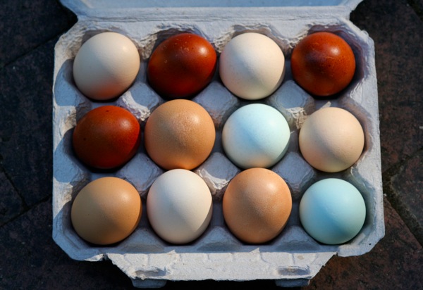 A refrigerator fully stocked with fresh eggs from the local chickens down the road.