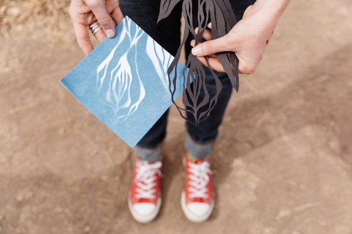 A papercut inspired by Georgia O’Keeffe, turned into a cyanotype, photo by Jules Davies