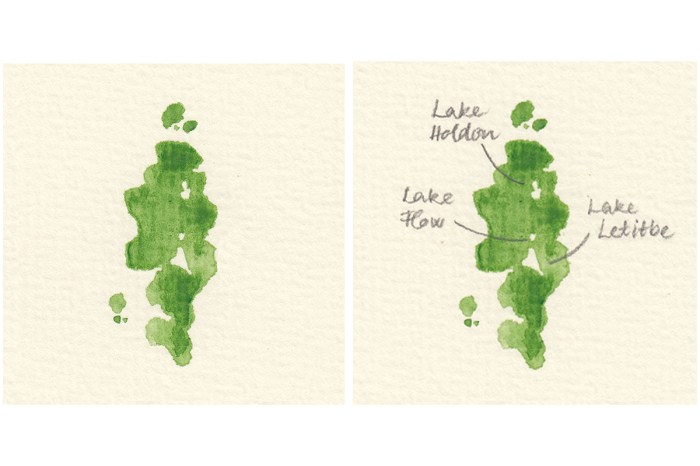 Now we get to the details and inner workings of your island. Start by thinking about if there is a feeling/a sensation/a sight that you long for. Make a bay that bears the name of it.
