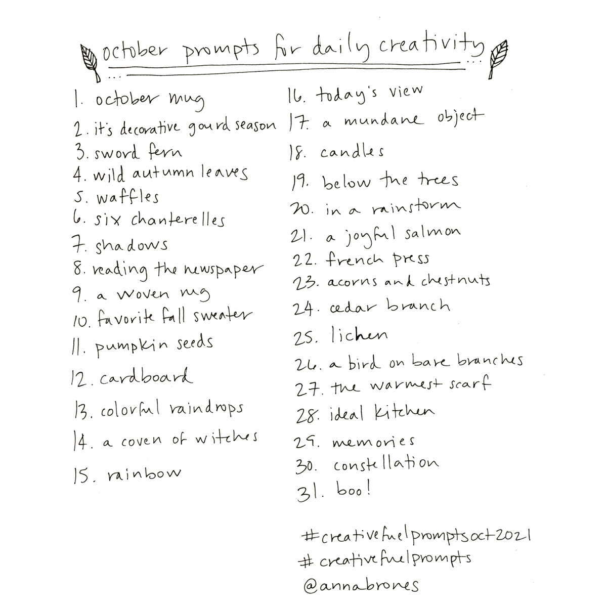 A new month, a new list of creativity prompts.