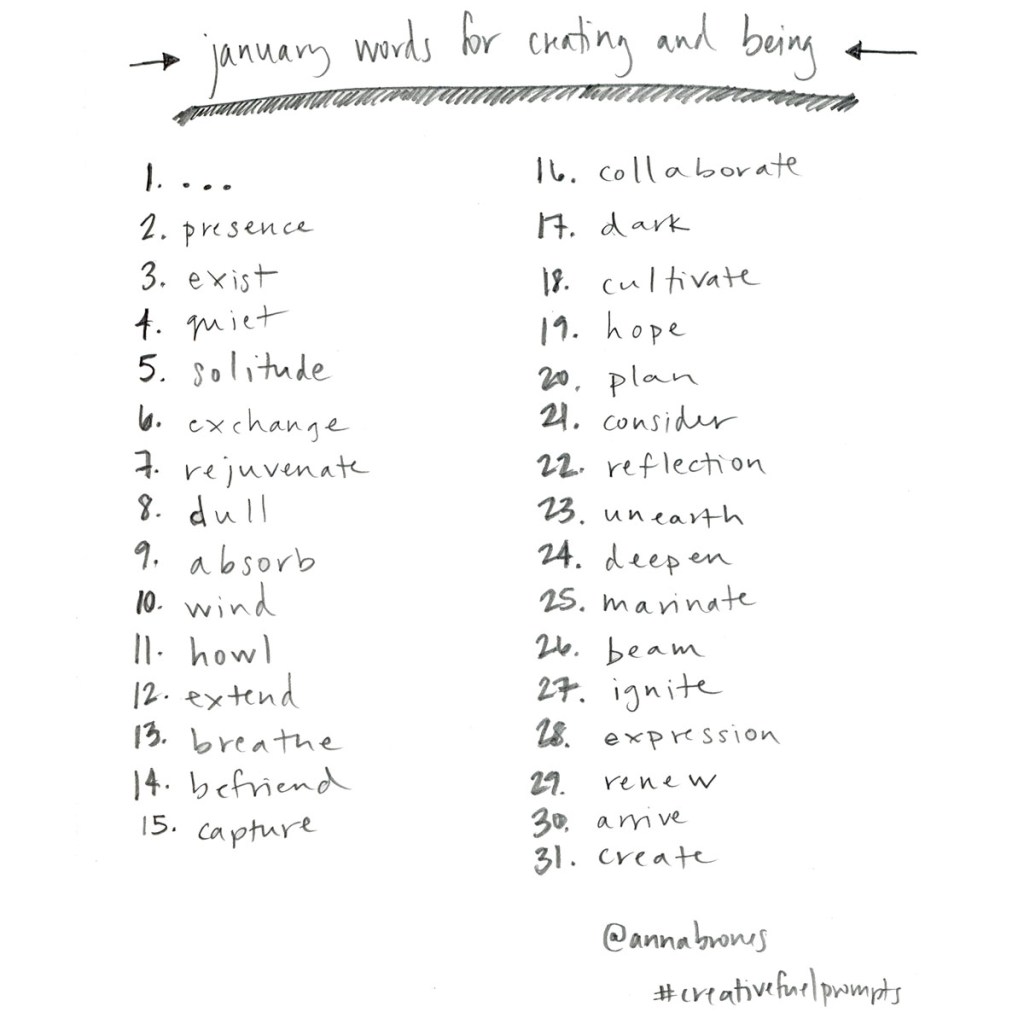 So these monthly lists of words will be a space for doing that. Use them as a springboard for writing, for drawing, or just for thinking. Take the word to paper with a pencil. Take the word with you on a walk and ponder. Share the word and see what conversation it sparks. These words are intended to create space for contemplation, they are an ask for you to invest time in the creative process in all of its forms.