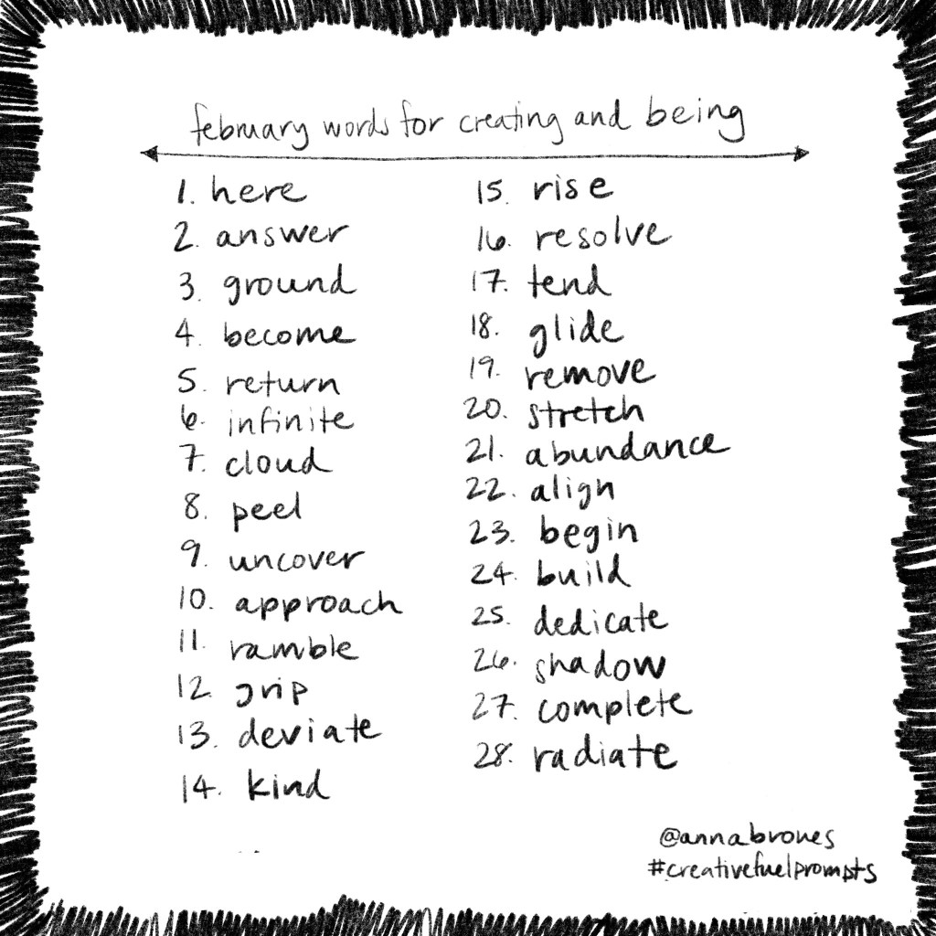 This is the second month of 2022 Words for Creating and Being (here are the ones from January). As opposed to last year when I made more specific prompts, a single word offers a little more room for interpretation. They can be for drawing, for writing, or simply for contemplating.