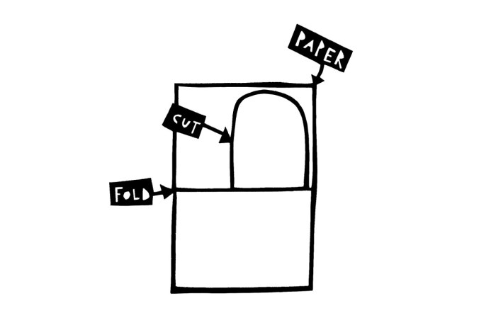 Cut two lines, so that the piece of paper is separated into thirds. Cut these lines about 3/4 of the way up, towards the rounded edge.