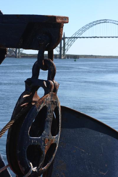 Last weekend I spent an excellent two days at the coast. It was a classic “coast road trip” weekend; stopping at various beaches, walking through coastal towns, and of course the necessary consumption of fish and chips. This photo comes from the Historic Bayfront in Newport; I wanted a photo that would capture the very maritime feel of this classic section of the town and the pulley with the Yaquina Bay Bridge in the background seemed just right.