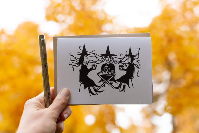 I just got a batch of greeting cards made with my “Witch Fika” papercut illustration. These are perfect for writing notes to everyone in your coven.