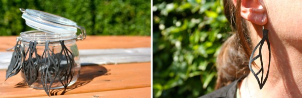 The first order officially out the door. Turns out that used bike tubes make for the best earrings.