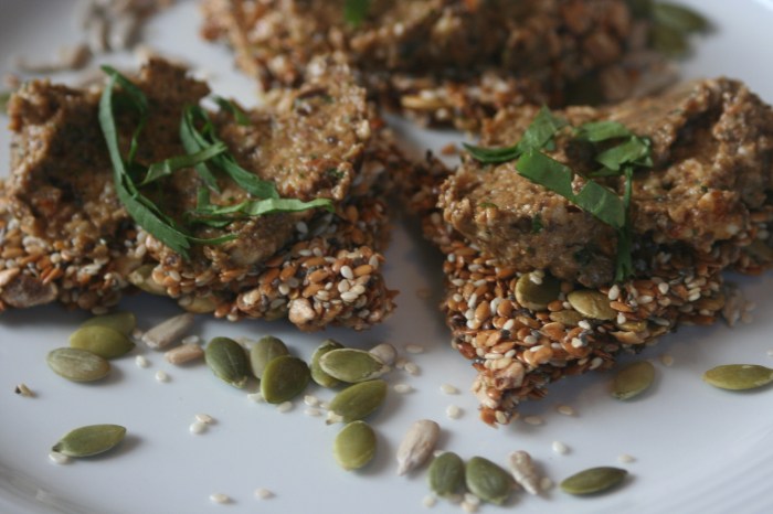 Recipe: Five Seed Crackers with Olive and Cilantro Tapenade