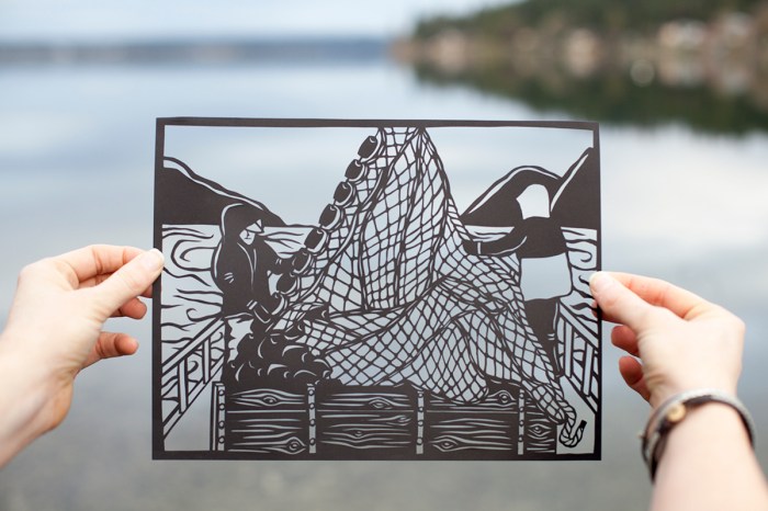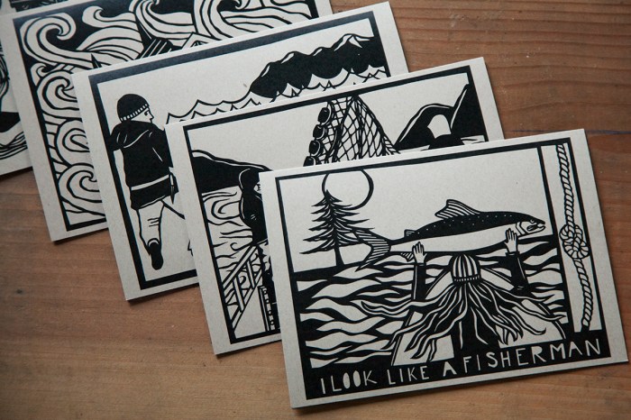 The result is five different cards featuring papercuts of mine. The series is titled ‘I Look Like a Fisherman’ and 50% of proceeds will be donated to sponsoring a promising young female fishermen to attend the 2017 Alaska Young Fishermen’s Summit in Anchorage, Alaska.
