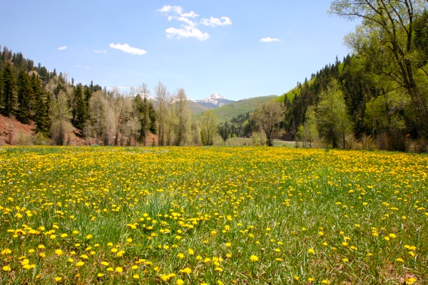On the stretch from Telluride to Dolores, Colorado. A beautiful field filled with yellow, perfect for a few photo opps.