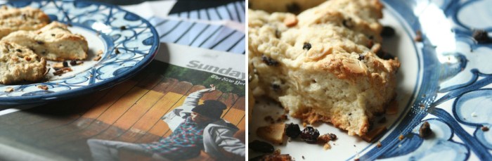 There’s a beauty in the simplicity of Sunday mornings. Coffee, newspaper and NPR in the background. These scones are a perfect addition. The recipe is adapted from Sheila Lutkins’ Dorset Scones in All Around the World.