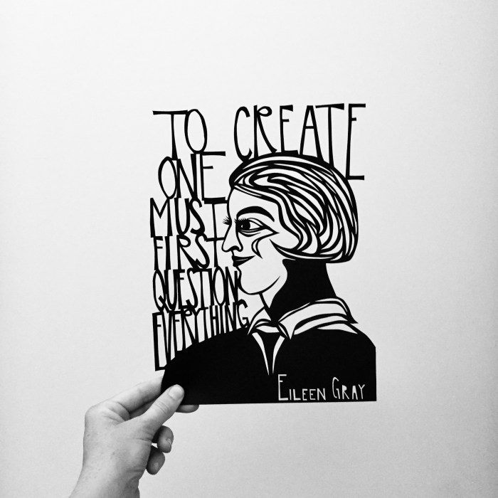 I didn’t know of designer and architect Eileen Gray until I saw a retrospective of her work at Centre Pompidou in Paris a few years ago, and I fell in love with her pieces and was inspired by her story.